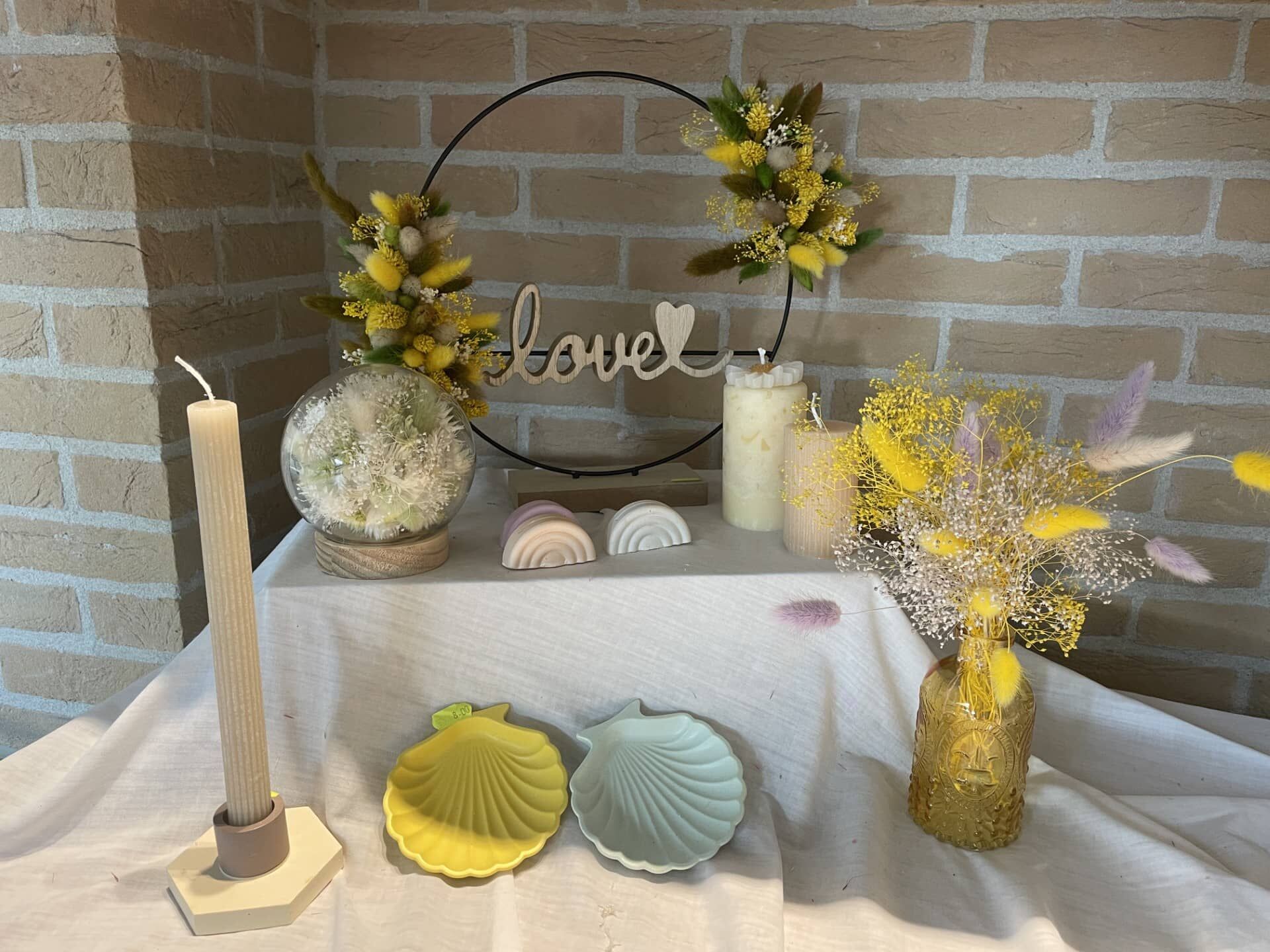 Tijdens de dagbesteding maken we bloemstukken, kaarsen, decoratie, aanmaakblokjes,… die we graag verkopen.